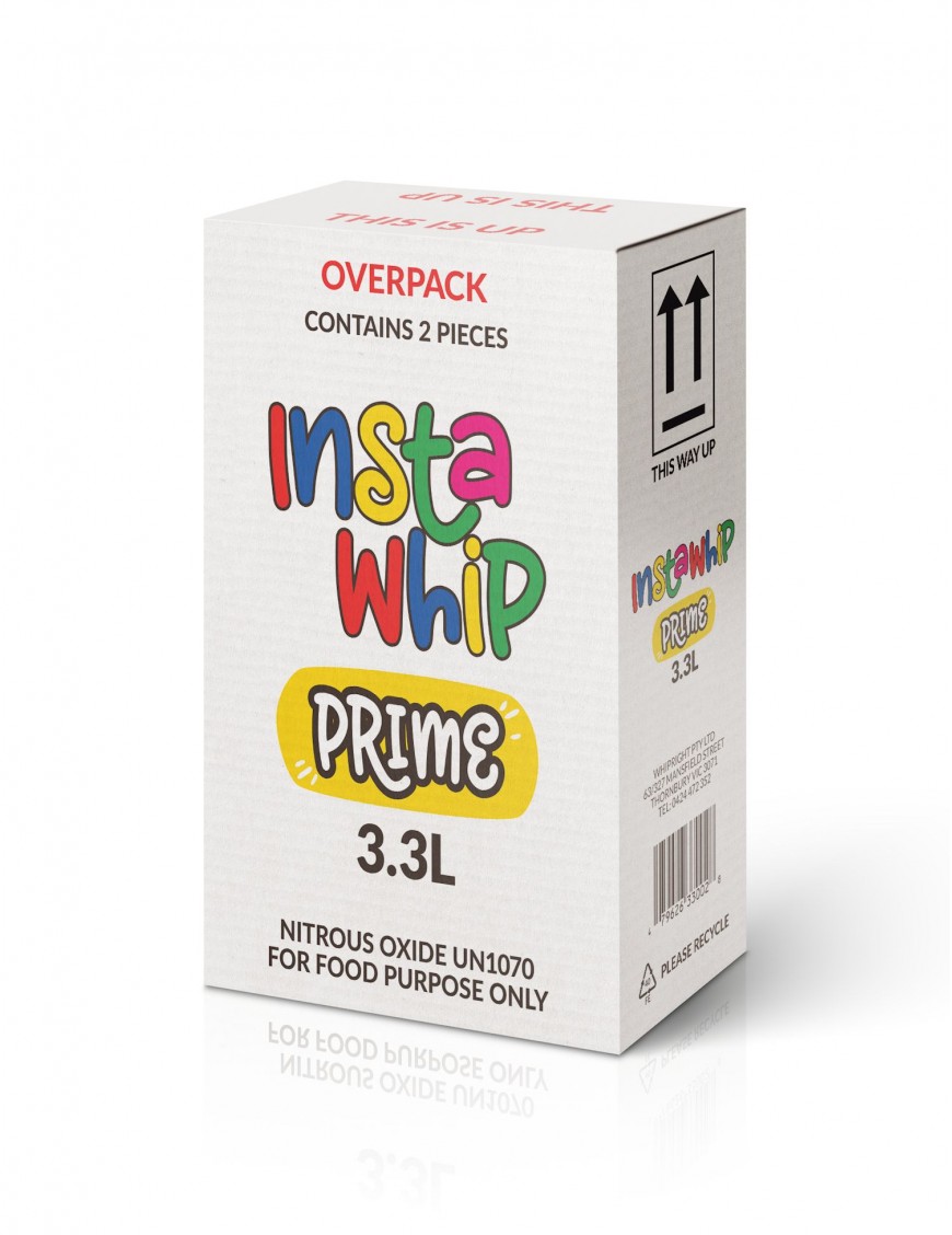 InstaWhip 3.3L Prime 2,048G affords you the ability to achieve all your culinary desires and imagination. Create the perfect cocktail, infuse the ultimate mousse, or put the final touch on your latest batch of delicious muffins using the InstaWhip Prime system. Each tank contains the equivalent of 256 regular 8g cream chargers, saving you both time and money.